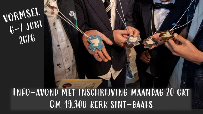 We kijken al vooruit naar de Vormselvieringen in 2026. Die zullen plaatsvinden op zaterdag 6 en zondag 7 juni, telkens in de voormiddag. Je kan aangeven naar welke van beide dagen je voorkeur uitgaat. De ouders van de kinderen die volgend jaar hun Vormsel ontvangen, worden uitgenodigd voor een info-avond met inschrijving op maandag 20 oktober in de kerk van …